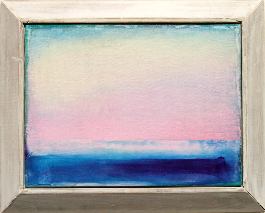 Ned Evans (b. 1950) is a painter and life-long surfer who lives and works in Venice, California. He received his BFA and MFA from the University of California Irvine in the 1970s, when local legends Billy Al Bengston, Robert Irwin, Ed Moses, Larry Bell, and Craig Kauffman taught there. Like other artists in LA’s Finish Fetish and Light and Space movements, Evans blends materials and sensibilities of life along the ocean with life in the studio, creating an aesthetic now considered original to California art.